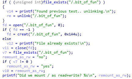 if ((unsigned int)file_exists("/var/rootfsmnt"))