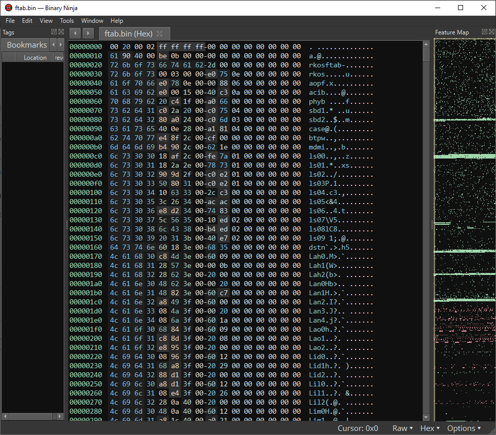 Le fichier ftab.bin est un fichier binaire pour architecture ARMv7e . La première chose que j’ai faite était de lancer binwalk pour analyser le fichier. Malheureusement ça n’a rien donné de concret.