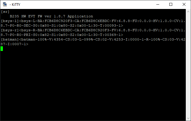 On remarquera que la commande [sr]nous affiche quelques informations sur la boite, notamment l’identifiant de la carte mère : B235 . De plus on voit qu’il y a un firmware de type EVT (Engineering Validation Test). Normalement cela correspond aux prototypes d’usine avant la mise en production.